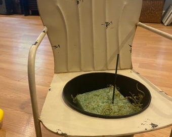 Saw off the legs of an old chair, give them a fresh coat of paint, and replace the seat with natural fibers, and you have a quick, easy way to hang planters on a tall fence. Cabilock iron plant stand for flower pot metal chair plant stand potted planter holder metal rustproof iron garden container round supports rack for planter garden home black. 2.we provide the high quality,competitive price and good service. If it doesn't, add some wooden planks to the place where the seat was. The best chairs for such purpose are the traditional old chairs, the wooden ones with simple lines, but still other types of chairs can be transformed into beautiful planters too. 5% coupon applied at checkout save 5% with coupon. Choose from contactless same day delivery, drive up and more. The tutorial in such a case is pretty easy: Mature queen of the night, black metal chair planter, 3 limbs, 1 shoot, and 10 + ft of plant surface. Home decor, furniture & kitchenware. Carefully plan the cut out for the pot. Barnyard designs herb pot planter set with tray for indoor garden or outdoor use, decorative white metal succulent potted planters for kitchen windowsill, (set of 3, 4.25 x 4 planters on 12.5 x 4. Oval rings planter (22) model# pl107.
